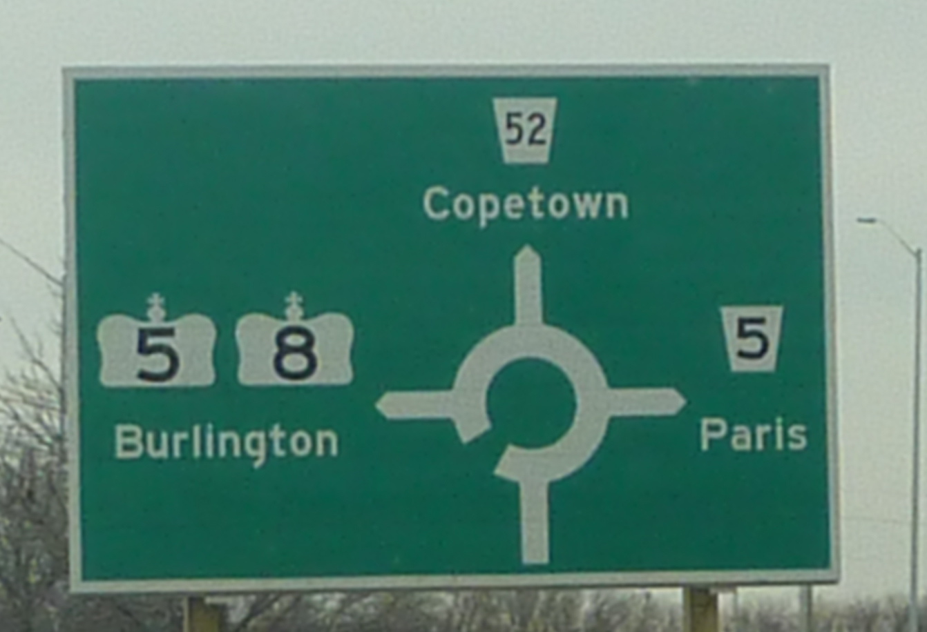 There should be a little sign on the bottom that reads..."for those of you who screwed up at the roundabout and are frantically searching for highway #8 east, make a U-turn right now"!