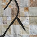 Last Sunday I finished hand quilting the first Life is Beautiful block. I did a bit of quilting in the embroidery, stitching inside the heart and following the swirling tree branch lines. Then I quilted just outside the appliqued circle, and in those middle seamlines that go out to each edge. That didn't seem to be quite enough so I also quilted a diagonal from the circle to the corners. I think that's enough to hold each block together, while still being not too labour intensive so that it will not take me another 2+ years to finish!!