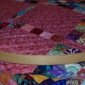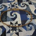This is my most frequently used hoop. It is a circular hoop and today it has my oldest UFO in it, which I am hand quilting. It is a great hoop to have on my lap while traveling or watching TV. It is sturdy and made of solid wood. It's a little heavier than most hoops, but I went through several flimsy wooden hoops that easily broke before I became a very happy customer of the hoops made by Keith Small of "Impressions in Wood". He was a regular vendor at quilt shows in my area for many years and although he passed away in 2015, his daughter has carried on his business. I'm thinking about buying one of their half hoops this year - click here and scroll down.